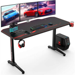 【Large Gaming Surface】 – The Vanspace gaming desk has a wide 55 inch carbon fiber textured desktop with plenty of surface for your computer monitors, gaming keyboard, and other gaming gear. Measure: 55.1”L × 23.6” W × 28.5” H, can bearing up to 330lbs for up to 3 monitors.
